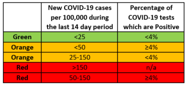 Under this system, individuals travelling from a ‘green’ region do not have to restrict movements on arrival in Ireland. Individuals travelling from an ‘orange’ region do not have to restrict movement if they can show a negative PCR test in the 3 days before arriving to Ireland.
