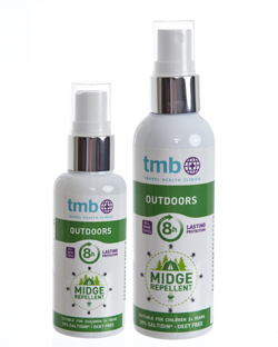 TMB Outdoors contains 20% Saltidin®. This DEET-free insect repellent is clinically proven to be as effective as equivalent 50% DEET products and is an excellent broad spectrum repellent for outdoor enthusiasts, gardeners or anyone spending extended periods outdoors. Protects against midge, mosquito, horsefly and tick bites.